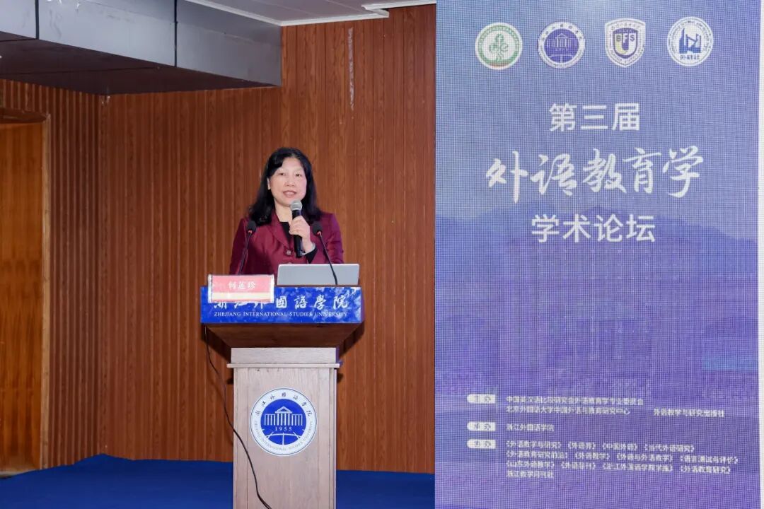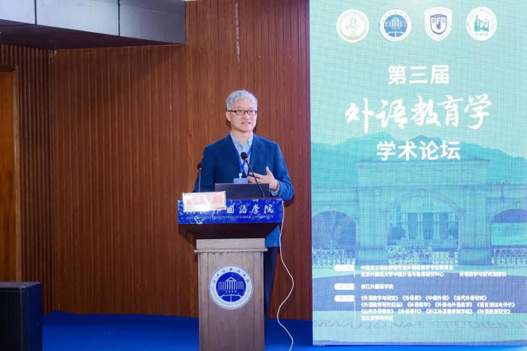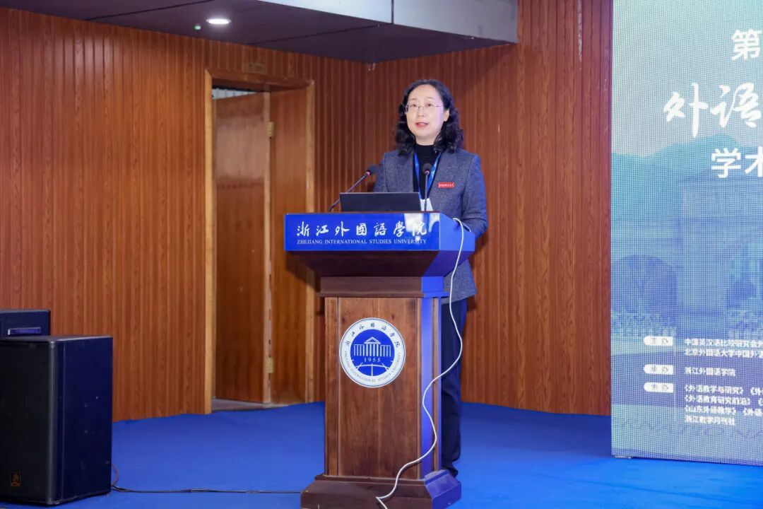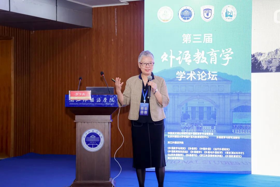 教育部高等学校大学外语教学指导委员会主任委员、浙江大学原副校长何莲珍教授以“提升大学英语教师素养,培养国际化拔尖创新人才”为题指出,外语教师在推进教育数字化过程中发挥着重要作用,提升外语教师的数字素养是大学外语教育深化改革之需,应以信息技术促进课堂革新,以科研引领教学创新,助力学生提升跨文化交流与全球胜任力,服务国家教育强国战略。