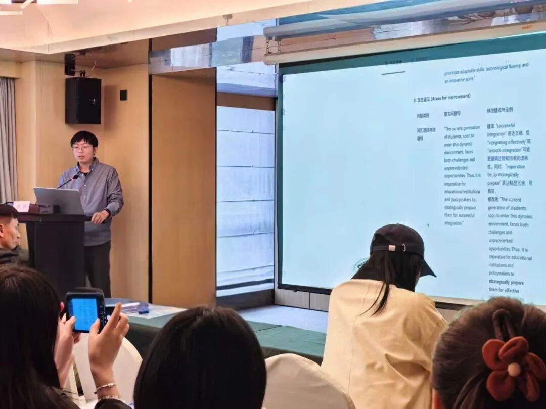 在课程引导环节,永利娱城app特聘副教授俞佳以“紫苏智能平台”为典型案例,深入展示了AI在口语诊断、作文批改与课堂行为分析等教学场景中的可定制化应用。通过实际案例的呈现,俞佳副教授帮助参训教师们明确了“AI工具要为课堂问题服务”这一核心思路,让教师们认识到AI不是教学的点缀,而是解决教学实际问题的有力工具。