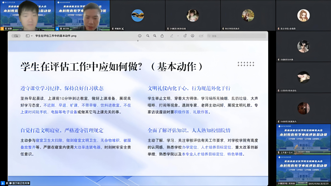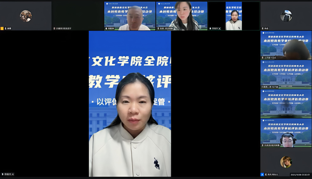 院长邢富坤首先对本科教育教学审核评估进行了动员,强调了其重要性,明确迎评核心:一是锚定“外语名校、申博建大”的学校目标与“支撑外语名校建设的英文强院”的学院定位;二是打造特色鲜明的英语类专业,践行“学生中心、育人为本、智能赋能”的课程理念;三是号召全体师生以“守土有责、浙外是我家”的担当,凝聚合力推进迎评。他鼓励师生与学院紧密联结,推动学科专业的深度融合。