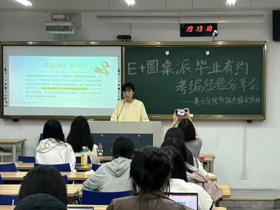 胡思桐首先向大家分析了当前教师编招考的形势,她强调,同学们需珍惜课堂试讲、PPT制作等训练机会,借助老师的指导快速提升教学能力。她结合自身经历,建议在实习期间,利用课余时间在教室练习试讲,提升教学水平。在地域选择上,她建议大家不要局限于热门地区,可选择要求宽松的区域,利用自身排名优势增加上岸几率。